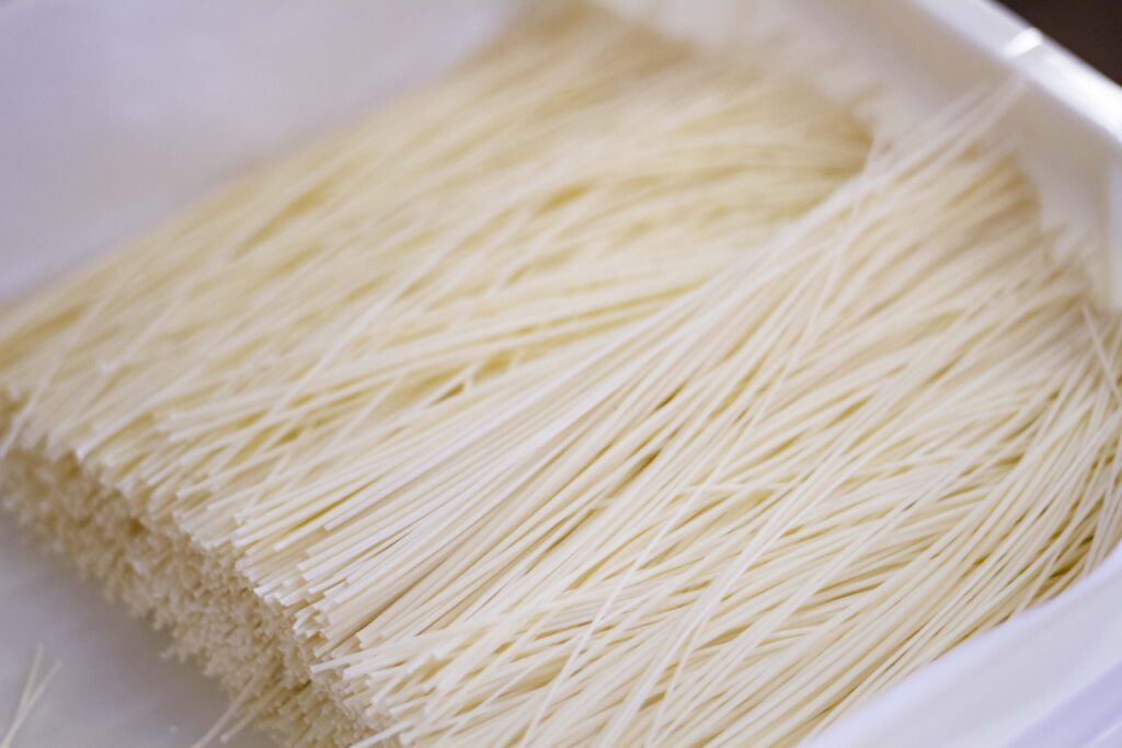 一般的な乾麺のそうめんは、時間をかけて乾燥・熟成させることで、あのパキッとした硬質の「コシ」が生まれます。これはこれで素晴らしい食文化です。
