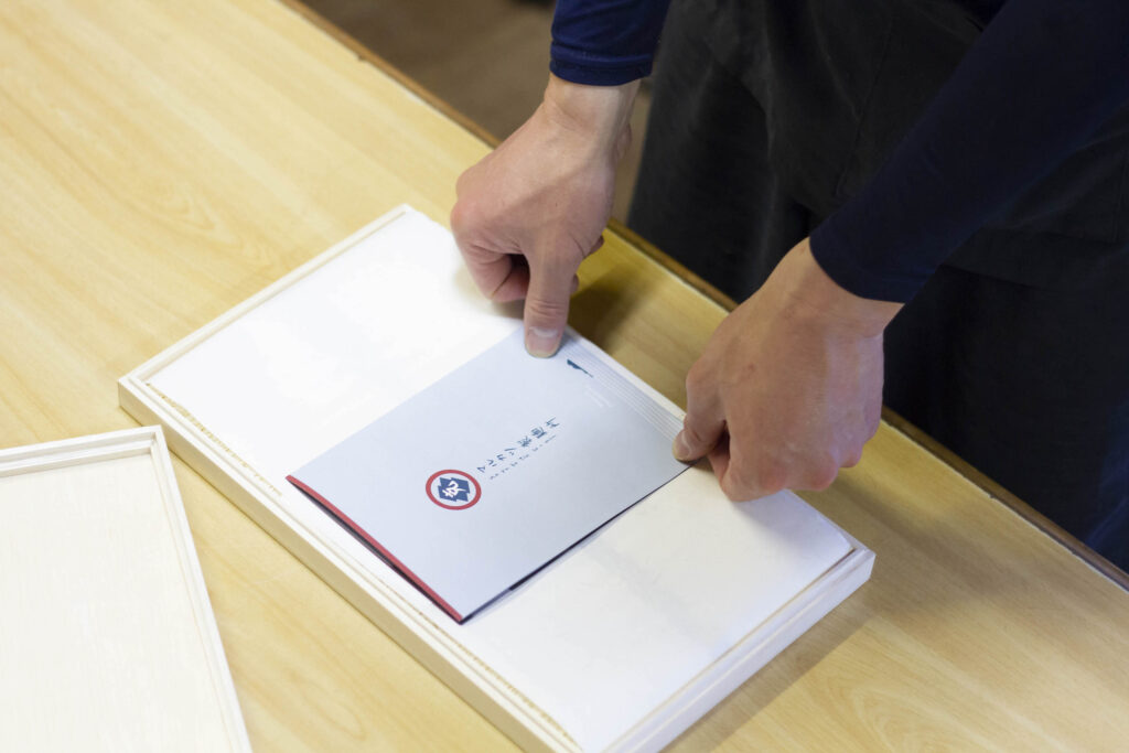 「お中元」「お歳暮」はもちろん、「内祝い」や「快気祝い」など。お客様がどのような想いでこの麺を送るのかを想像し、シワ一つないよう、ピンと張った状態で包装します。受け取った方が箱を開ける前、包装紙の手ざわりから職人の丁寧さを感じていただけたら、これほど嬉しいことはありません。