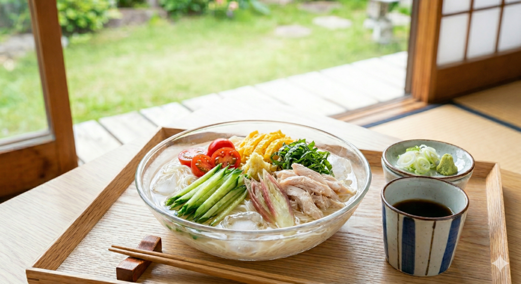 - 栄養バランス: 麺だけで済ませず、夏野菜や豚しゃぶ、卵などのタンパク質を添えるのが太りにくい食べ方の鉄則です。